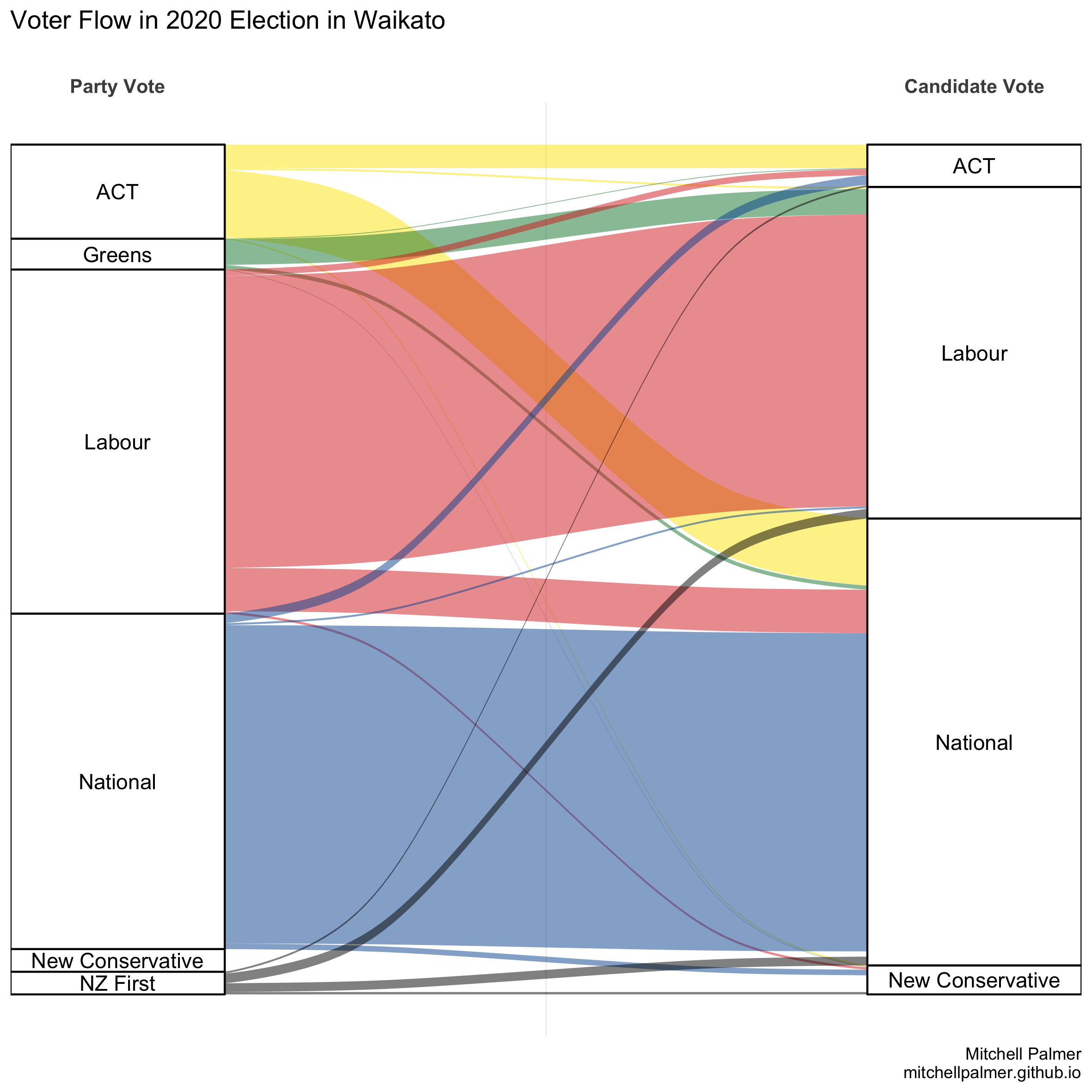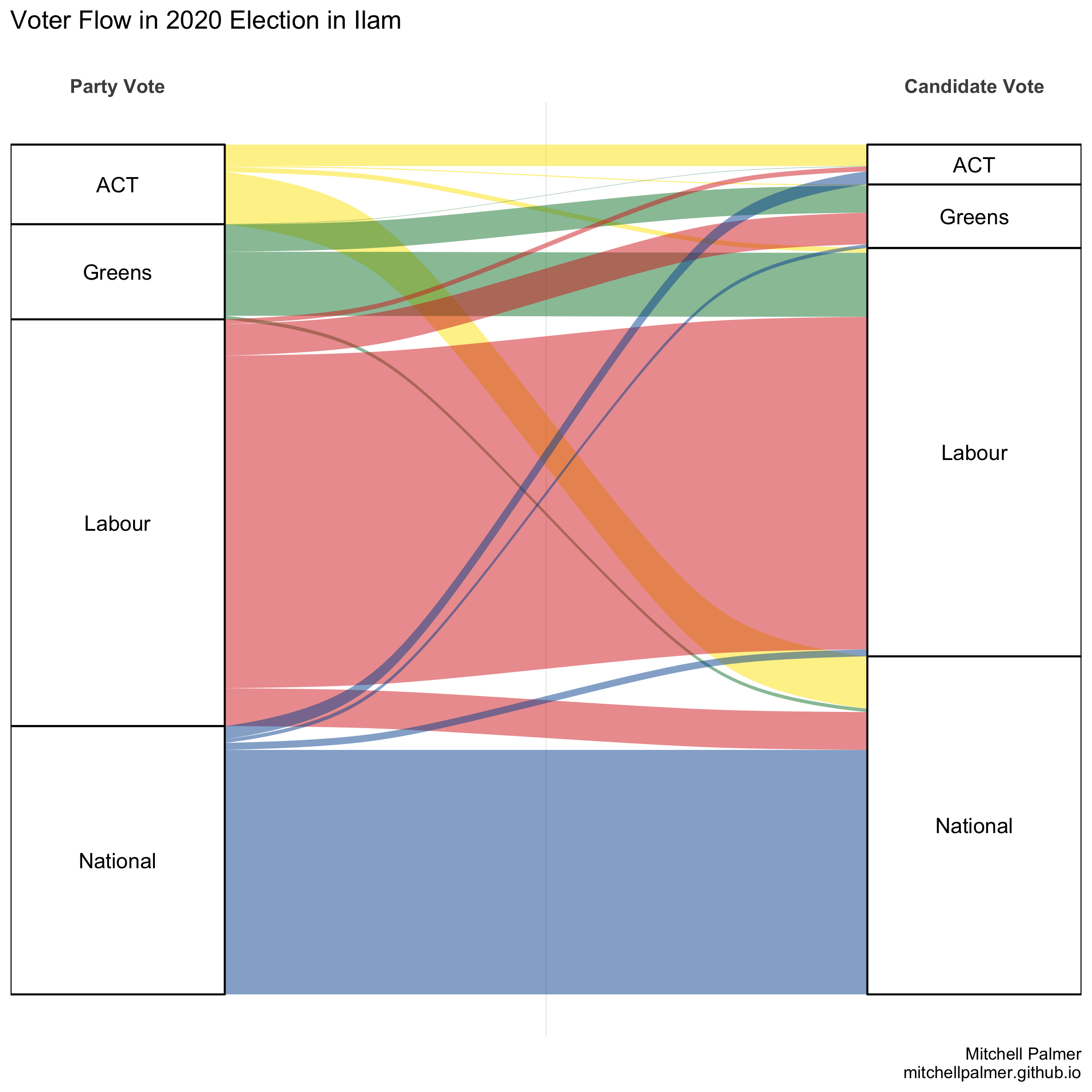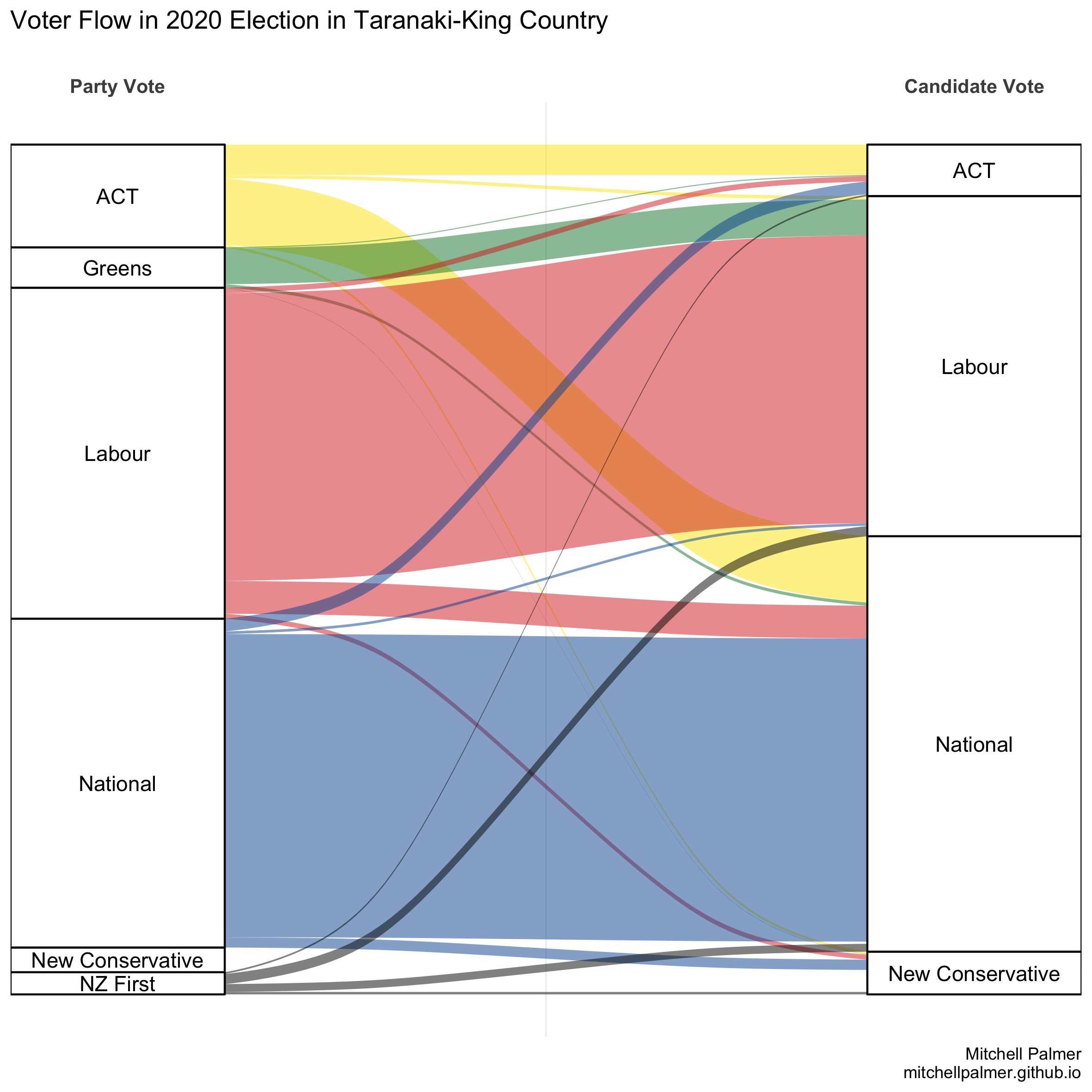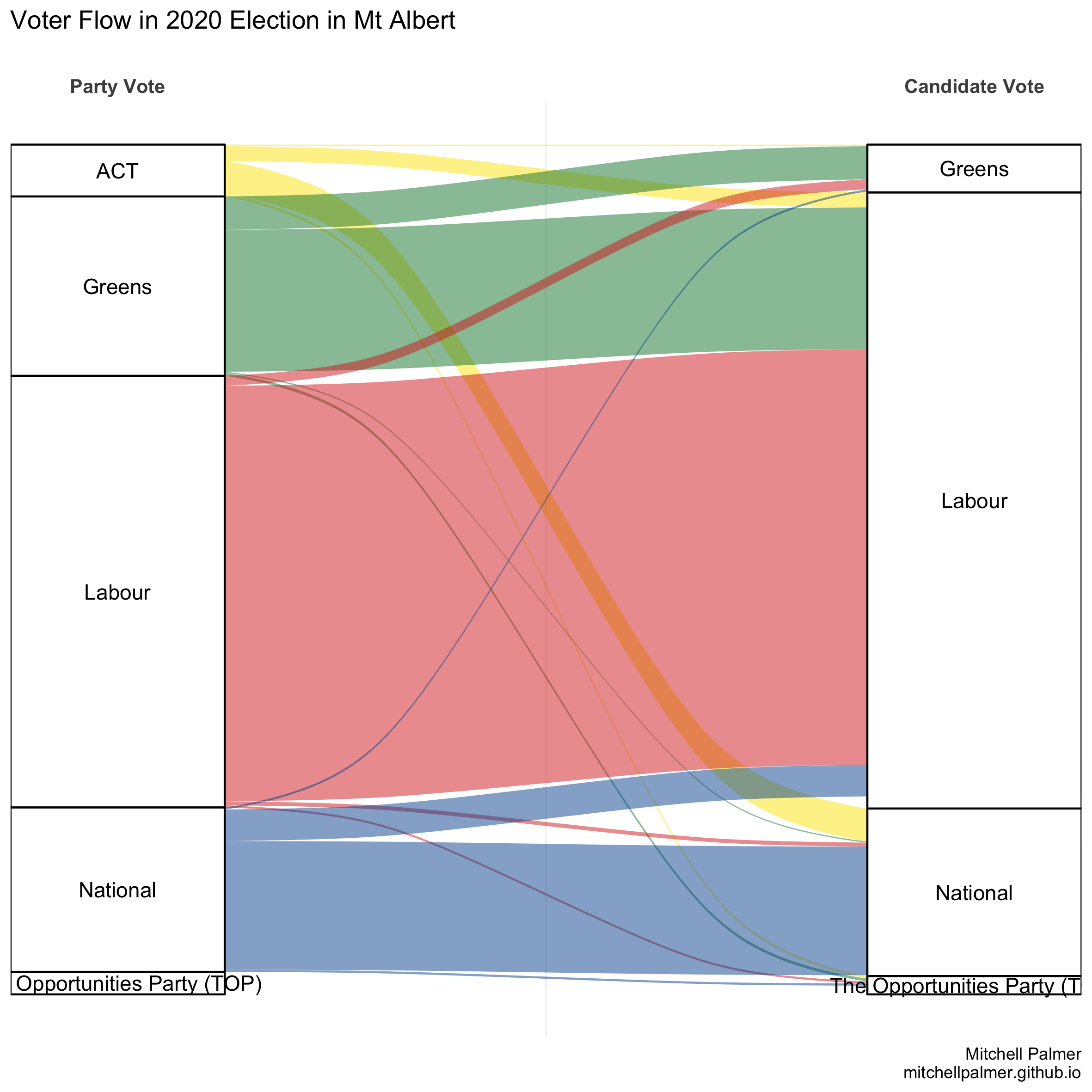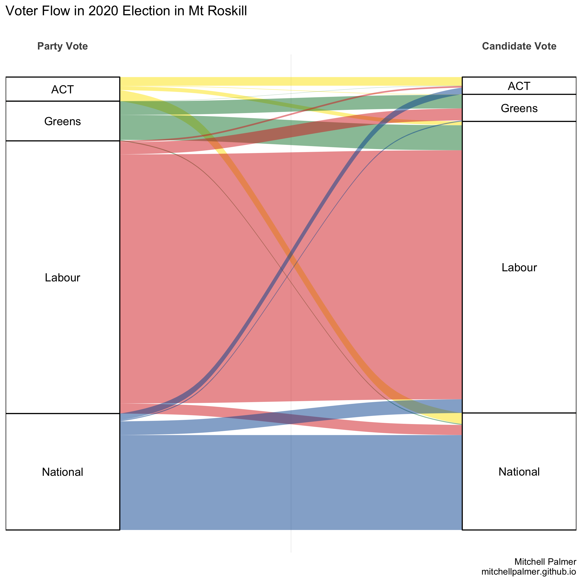 You can click on each electorate name to see a graph of that electorate’s voter flow. The only parties shown in each graph are the parties which recieved more than 1,000 party votes in that electorate.